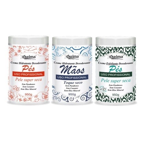| Kit Manicure Pedicure Cremes Kelma Mãos Pés Esfoliante 950g este produto | R$ 65,39 | 11% | 4.9/5 | 9 |