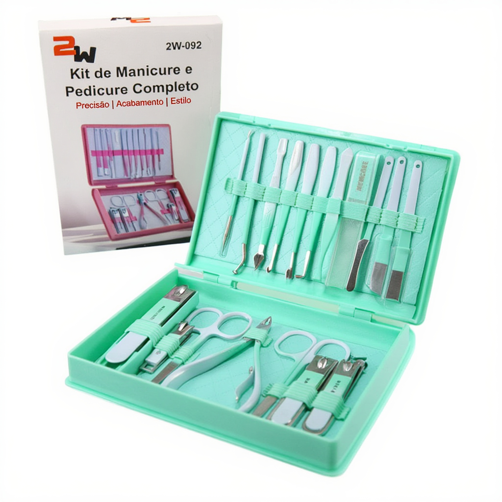 Kit Manicure e Pedicure Profissional 18 Peças – Cuidados Premium em Suas Mãos e Pés! Transforme o cuidado com suas unhas e pele em uma experiência de salão, no conforto da sua casa ou em qualquer lugar do mundo. Este kit completo foi desenvolvido para quem não abre mão de higiene, precisão e estilo. Por que escolher o nosso Kit? • Diferente dos kits comuns, o nosso é fabricado com uma combinação de Aço Inoxidável e Aço Carbono, garantindo um corte preciso, alta durabilidade e resistência à corrosão. Tudo isso organizado em um estojo de Plástico ABS ultra resistente, com um design moderno e trava de segurança. O que você encontrará no seu Estojo (18 Itens): • O kit é dividido em duas frentes de cuidado completo: • Cuidados com as Mãos: Cortadores de unha (tamanhos variados para diferentes cortes), lixa de cristal e empurradores de cutícula com acabamento profissional. • Cuidados com os Pés: Alicates de corte robustos, desencravadores de unha e raspadores para remoção de calosidades e pele morta, garantindo pés macios e saudáveis. Destaques do Produto: • Material de Elite: Lâminas afiadas que não perdem o corte facilmente. • Portátil e Elegante: Com apenas 16cm x 11cm x 3cm, cabe perfeitamente na sua bolsa, mochila ou mala de viagem. • Higiene em Primeiro Lugar: Itens fáceis de esterilizar e limpar. • Cores Modernas: Escolha a que mais combina com você: Verde Água Com Branco, Rosa Com Branco ou Cinza Com Dourado. Especificações Técnicas: • Quantidade de itens: 18 Peças. • Material dos Utensílios: Aço Inoxidável e Aço Carbono. • Material do Estojo: Plástico ABS rígido de alta qualidade. • Dimensões: 16cm (C) x 11cm (L) x 3cm (A). • Peso aproximado: 330g (Leve e prático para transporte). Conteúdo da Embalagem: • 1x Estojo com 18 ferramentas de manicure/pedicure. Garanta já o seu! Este kit é o presente ideal para você ou para alguém especial. Estoque limitado para as cores Verde, Rosa e Cinza. Dica: Mantenha seus utensílios sempre limpos e secos após o uso para preservar o brilho e o corte do aço por muito mais tempo!