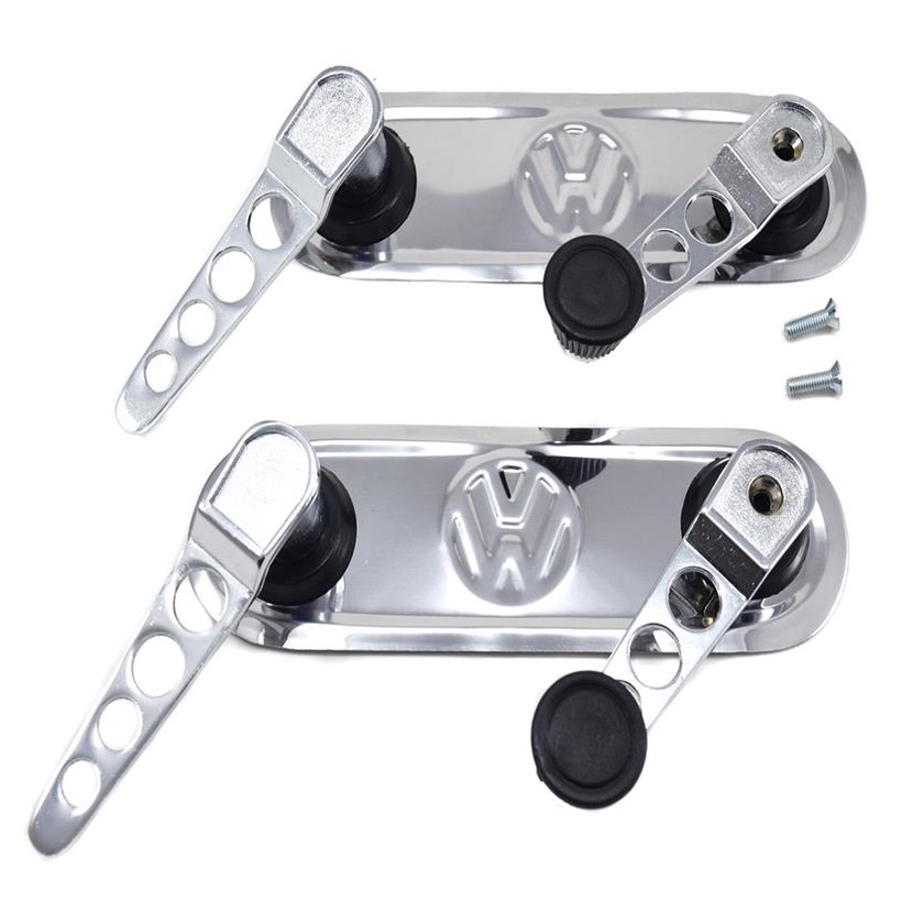Kit Manivelas Vidros Maçanetas Portas Esportivas Cromadas Espelhos Inox Reto com Logo Fusca 1970 A 1977