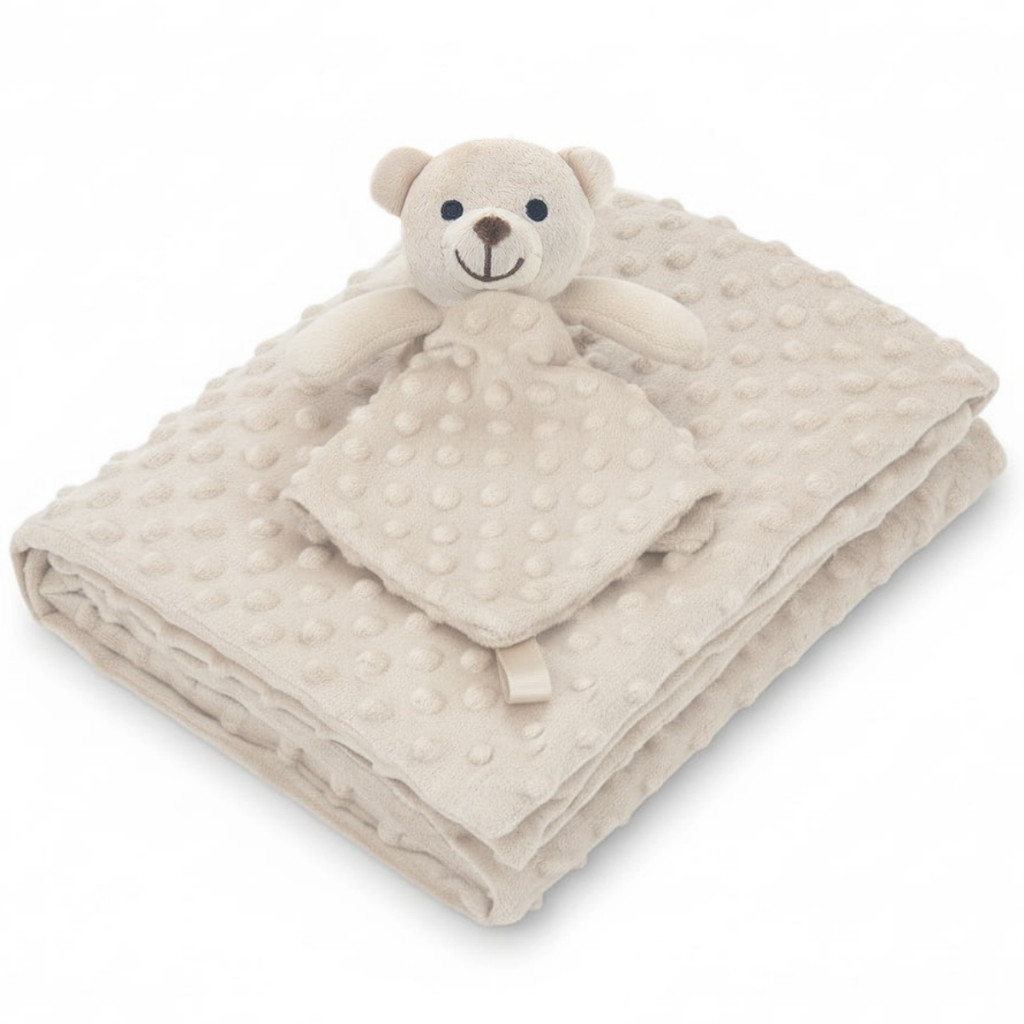 🐻✨ Kit Manta e Naninha Urso com Prendedor de Chupeta – A Companhia Perfeita para o Soninho do Bebê! ✨🐻 Dê ao seu bebê todo o conforto e carinho que ele merece com a Manta e Naninha com Prendedor de Chupeta! Com um toque suave e aconchegante, essa manta e naninha é feita com pelúcia hipoalergênica, perfeita para proporcionar tranquilidade e segurança na hora do soninho. Além do design encantador de ursinho, ela vem com um prendedor de chupeta integrado, garantindo mais praticidade e evitando que a chupeta se perca ou caia no chão. Disponível nas cores azul, azul marinho, bege e rosa, é ideal para bebês de todas as idades! Tamanho Naninha: 30 x 30 cm Tamanho Manta: 76 x 91 cm 💙 Destaques do Produto: ✅ Pelúcia macia e antialérgica – Toque delicado para a pele sensível do bebê. ✅ Prendedor de chupeta incluso – Mantém a chupeta sempre acessível e limpa. ✅ Disponível em três cores – Azul, bege e rosa para combinar com qualquer enxoval. ✅ Companheira perfeita para o soninho – Sensação de aconchego e proteção. ✅ Fácil de lavar e transportar – Ideal para casa e passeios. 🌟 Transforme os momentos de descanso do seu bebê em uma experiência tranquila e cheia de carinho com a Manta e Naninha de ursinho! 💖🐻