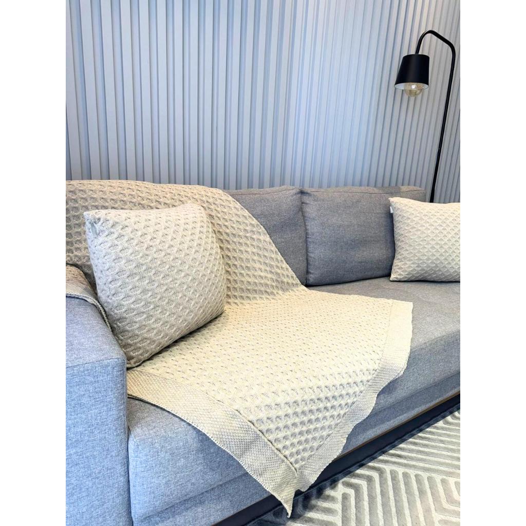 Kit Manta Sofá Poltrona Sala + 2 Capas Almofadas Colmeia Zíper Decoração Tricot