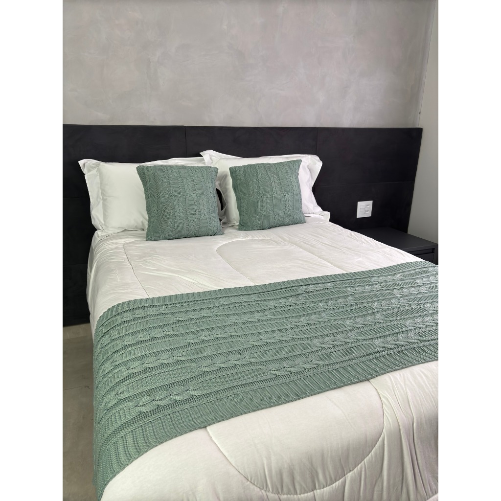 Kit Manta Tricô Com Trança Para Sofá e Cama Casal Queen King Peseira Fio de Malha Com Almofadas RA