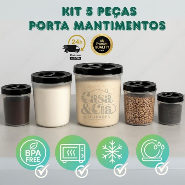 | Kit Mantimento Conjunto 5 Potes Com Tampa De Rosca BPA FREE Organiz... este produto | R$ 89,90 | — | 4.9/5 | 339 |