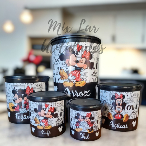 Kit Mantimentos 5 peças Mickey e Minnie Love - Organização de alimentos