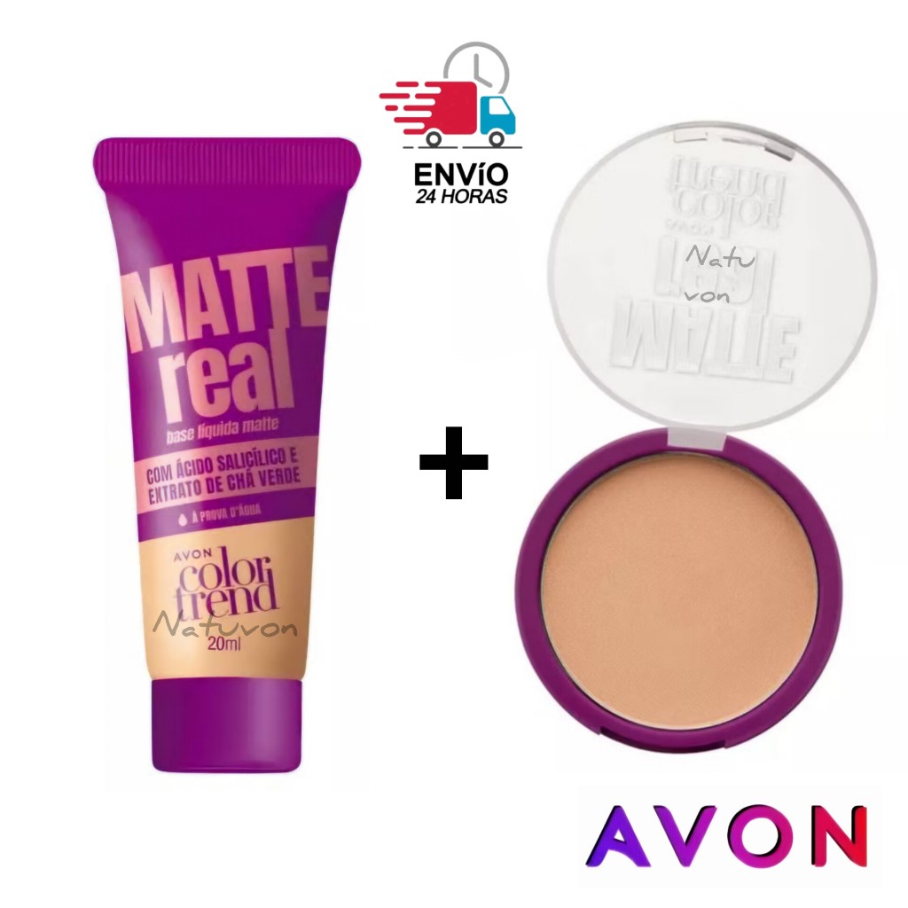 Kit Maquiagem Base e Pó compacto Avon Color Trend Matte Real Escolha sua cor (2 Produtos)