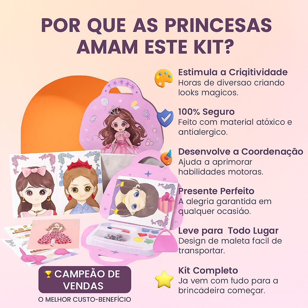 📝 Prepare-se para ver um sorriso mágico se abrir! 💖 Com esta Maleta de Maquiagem de Princesa, a brincadeira se transforma em um verdadeiro conto de fadas. Mais do que um brinquedo, é um convite para um mundo de criatividade e sonhos, onde sua pequena pode se tornar uma rainha, uma fada ou sua heroína favorita. Sinta a alegria dela ao descobrir cada cor e acessório, criando memórias que brilharão para sempre! ✨ Explore um universo de possibilidades com segurança e tranquilidade. Cada item foi pensado para as mãozinhas delicadas e a pele sensível das crianças. 👑 Um Tesouro de Princesa: Com um design encantador de bolsinha, é fácil de levar a magia para qualquer lugar, seja para a casa da vovó ou para uma tarde com as amigas. 🎨 Cores do Arco-Íris: A paleta com 6 cores vibrantes e seguras permite que a imaginação voe alto, criando looks incríveis sem preocupação. É a liberdade de se expressar! 💎 Brilho e Glamour: As pedrinhas decorativas adicionam aquele toque final de realeza, transformando qualquer maquiagem em uma obra de arte cintilante. 📚 Aprendizado Divertido: O livrinho com rosto é o segredo para praticar e aperfeiçoar as criações, desenvolvendo a coordenação motora e o talento artístico de forma lúdica e segura. ⭐ Especificações Técnicas: Material: Plástico (PP/PVC atóxico), Espuma e Cerdas sintéticas (Nylon) – 100% seguro para crianças. Dimensões da Maleta: 24cm (comprimento) x 21cm (altura) x 3cm (largura). Peso Aproximado: 273g – Leve e perfeita para levar para todo lugar! Cor Principal: Rosa. Idade Recomendada: A partir de 4 anos. Itens Inclusos: 01 Maleta em formato de bolsinha 01 Livro com rosto para treinar 06 Sombras coloridas e antialérgicas 06 Pedrinhas decorativas adesivas 02 Pincéis aplicadores 01 Caneta para aplicação de pedrinhas 📢 Chamada Final: Não espere mais para realizar um sonho! Dê o presente que vai transformar dias comuns em momentos inesquecíveis de pura fantasia e felicidade. Clique em comprar agora e garanta o sorriso mais brilhante que você já viu! 🎁
