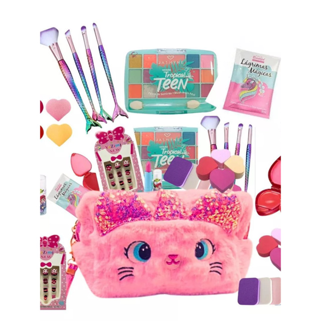 UM LINDO KIT DE MAQUIAGEM INFANTIL COM BOLSA GATINHO COMPLETA MAKE PARA PRESENTEAR SUA FILHINHA OU NETINHA️ ELA IRÁ AMAR ESSE KIT E FAZER VARIAS MAKES ️ ESSE KIT PODE CONTÉR OS SEGUINTES ITENS : NECESSAIRE ( ESTAMPAS ALEATÓRIAS,MODELOS ALEATÓRIO )️ ANEL OU LIGUINHAS️ GLITTER️ XUXINHAS COLORIDAS️ BATOM ️ BRILHO LABIAL️ TIARA DE GATINHO️ COLAR ️ PULSERA DE PÉROLA️ ANEL DE PÉROLA️ ESMALTE INFANTIL ️ MÁSCARA FACIAL (SACHÊ)️ UNHAS ADESIVAS️ PINCÉIS ️ GLITTER️ UNHA POSTIÇA️ BLUSH️ PELETA DE SOMBRAS ️ TIARA UNICÓRNIO️ ESPOJINHA POLVO ️ ️TOTAL: 11 ITENS!!️ !!!ATENÇÃO !!! NECESSEIRE E PINCÉIS SERÃO ENVIADO EM TODOS OS KITS, CADA PINCÉL CONTA COMO 1 ITEM NO KIT! ️ NA FALTA DE ALGUM PRODUTO CITADO ENVIAREMOS OUTRO DO MESMO (similiar OU SUPERIOR️)