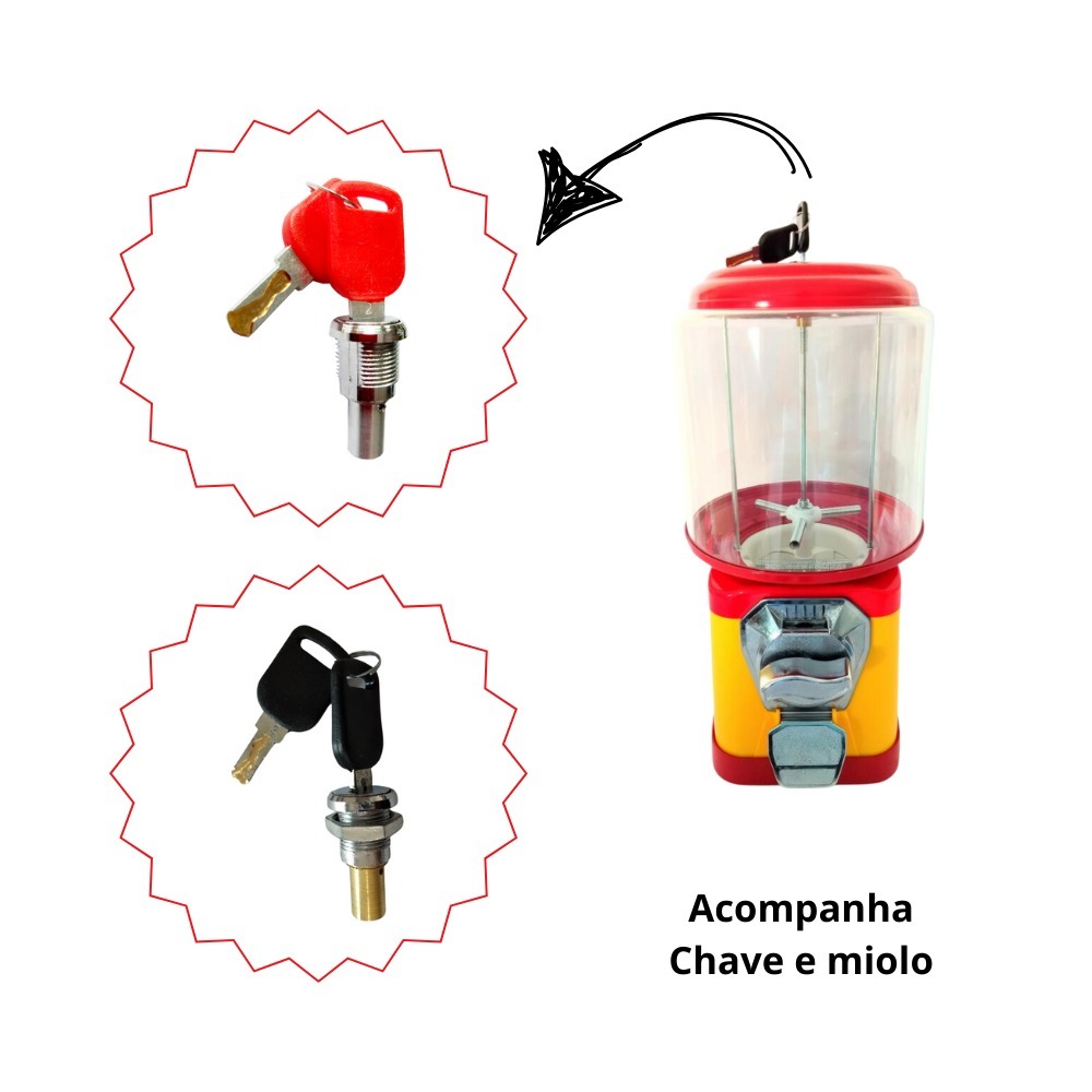 ITENS INCLUSOS: - 1 MAQUINA DE BOLINHA - VENDING MACHINE CATRACA PARA R$ 2,00 (DUAS MOEDAS DE 1,00) - 1 PEDESTAL DE BASE REDONDA EPOX( NÃO ENFERRUJA E NÃO QUEBRA POIS O PEDESTAL É DE BASE FIXA E NÃO DE ROSCA) - 1 KIT PARAFUSO PARA MONTAGEM - 100 UNIDADES DE BOLINHA PULA PULA 27MM Mix Sortidos MODO DE USAR A MÁQUINA: - Coloque uma moeda na cavidade da maquina e gire a catraca no sentido Horário ( Direita) até o giro ser completo depois abra a aba inferior e retire sua capsula ;) ABASTECER A MÁQUINA: - Coloque a chave que acompanha a máquina em cima na Fechadura e gire ela no sentido anti- horário( esquerda) para soltar o mecanismo e soltar a tampa , retire a tampa e coloque os produtos dentro da máquina Pokemon, Bolinha ou Chicletes coloque a tampa e gire a chave no sentido horário( direita ) para fechar a maquina RETIRAR AS MOEDAS: - Para retirar as moedas coloque a chave na parte superior da máquina e gire no sentido anti - horário ( esquerda até soltar a fechadura retire a tampa a cuba ( parte de acrílico) e a parte inferior de plastico o corpo da maquina agora só retirar suas moedas logo apos coloque o corpo da máquina a cuba e a tampa e finalize com a chave gire no sentido horário e sua máquina estará pronta para uso novamente e BOAS VENDAS PRODUTOS QUE PODEM SER VENDIDOS NA MÁQUINA: - Vende Bolinhas Pula Pula de 27mm e 32mm, Chicletes e Capsulas de UMA POLEGADA (de 2,6cm a 3,2 cm) temos vários modelos de cápsulas para serem vendidos na máquina CAPACIDADE DE PRODUTOS NA MÁQUINA: - Capacidade: Bolinhas de 27mm 320 unidades, Bolinhas de 32mm 200 unidades, Capsula de 1" 200 unidade, Chicletes 370 unidades. TAMANHO E DIMENSÕES DA MÁQUINA: - Dimensões: da máquina 46x22x22cm - Tire todas as suas duvidas antes de efetuar a compra, estaremos a disposição para lhe atender. - Também pode ser retirada em mãos. QUALQUER DÚVIDA ESTAMOS A DISPOSIÇÃO BOLINHA MÁGICA.