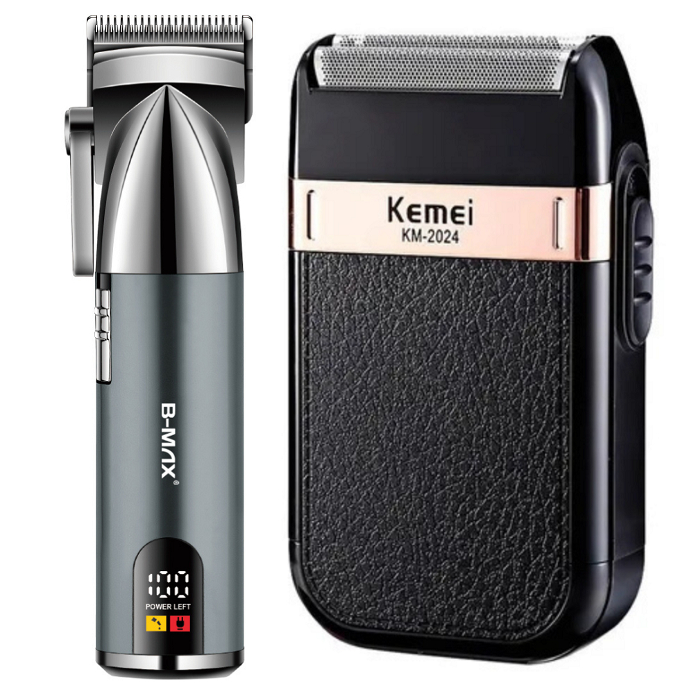 Kit Máquina de Cortar Cabelo e Barbeador Elétrico Shaver Acabamento Sem Fio Recarregável USB