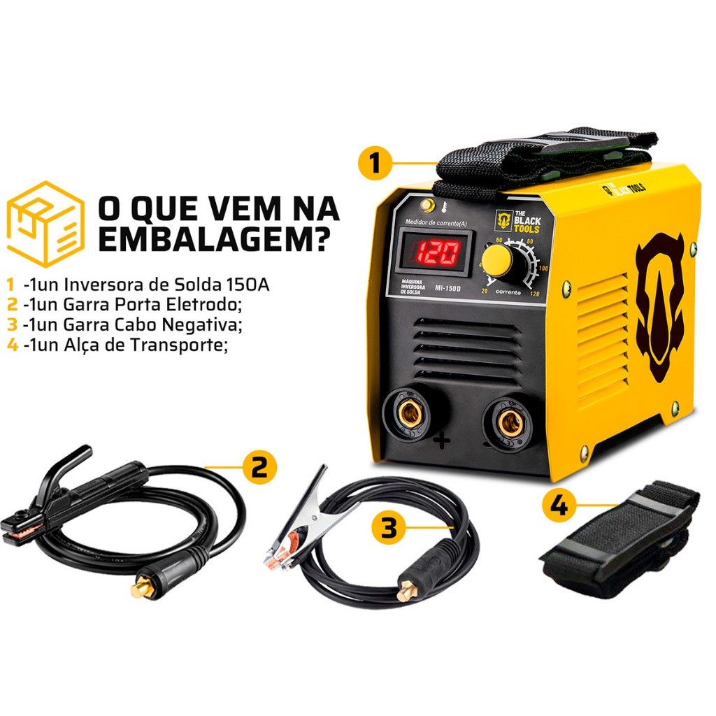 Distribuído por Ismafer Ferramentas Descrição: Kit composto por: 01 - MAQUINA DE SOLDA ELETRICA INVERSORA The Black Tools 01 - ESMERILHADEIRA LIXADEIRA ANGULAR 4.1/2 Hammer 01 - FURADEIRA DE IMPACTO 3/8" 10MM 550W TBF550 - THE BLACK TOOLS 01 - Pares De Luvas Segurança Tricotada Preta Leve Com Pigmento 03 - DISCO DE CORTE FINO 4.1/2" START COM 03 UNIDADES MAQUINA DE SOLDA ELETRICA INVERSORA COM VISOR DIGITAL 120A MI150D - The Black Tools A Máquina Inversora de Solda 120A MI150D possui tecnologia moderna e avançada, sendo ideal para serviços de solda em montagens e reparos de estruturas metálicas em geral; Compacta e leve, permite obter acabamento profissional. A inversora realiza solda MMA e TIG, mas é importante notar que a tocha TIG não está incluída. Sendo necessário adquiri-la separadamente. VANTAGENS: - Por ser um equipamento leve e pequeno facilita muito o trabalhos em locais de difícil acesso ou em altura elevada; - Possui visor digital para melhor visualização do trabalho exigido; - Solda aço, aço carbono, entre outros metais ferrosos. CARACTERÍSTICAS: - Solda MMA (Eletrodo) e também TIG, porém não acompanha tocha; - Funções: Hot Start, Ark Force e Anti Stick; - Não solda MIG. DIMENSÕES DOS CABOS: - Cabo de força (tomada): 1,50Mt; 20A. - Porta eletrodo e garra: 1,14Mt. ITENS INCLUSOS: - Alça para transporte; - Cabo Porta Eletrodo; - Fonte Inversora; - Inversora. OBSERVAÇÃO: NÃO ACOMPANHA TOCHA TIG Marca: The Black Tools Modelo: MI150D Peso: 2 Kg Dimensões (AxLxP): 15 x 10,5 x 23 cm Garantia: 06 Meses (Fabricante) + ESMERILHADEIRA LIXADEIRA ANGULAR 4.1/2 POL 115MM 710W GYEM7101 HAMMER A esmerilhadeira da Hammer é uma ferramenta versátil, que permite realizar diferentes trabalhos com um acabamento profissional. Por isso, é uma excelente opção adicioná-la à sua oficina ou caixa de ferramentas. Segura e fácil de manobrar. Na hora de trabalhar com ferramentas, é importante que sua segurança seja garantida. Com o botão de bloqueio de disco que vem integrado, você pode reduzir o risco ao trabalhar com discos de corte. FICHA TÉCNICA: - Uso Indicado: Corte e desbaste pequenos perfis uso hobista - Diâmetro do Disco em Milímetro: 115 mm - Velocidade: 11000 rpm - Potência: 710 W - Ferramenta Intercambiável: Não - Alimentação: Elétrica - Diâmetro do Disco em Polegadas: 4.1/2 " - Tipo: Angular - Eixo: M14 - Possui Trava de Eixo: Sim CONTÉUDO DA EMBALAGEM: - 01 Esmerilhadeira Angular EM-710-1 - 01 Empunhadura Lateral - 01 Chave de porca para fixação - Manual de Uso ATENÇÃO: ESTE EQUIPAMENTO NÃO É INDICADO PARA USO EM MADEIRA, VISANDO A SEGURANÇA DO OPERADOR E A PRESERVAÇÃO DA FERRAMENTA. Garantia: 180 Dias (Fabricante) + FURADEIRA DE IMPACTO 3/8" 10MM 550W TBF550 - THE BLACK TOOLS A Furadeira de Impacto TBF550 da The Black Tools é a escolha ideal para quem busca potência, precisão e durabilidade em um só equipamento. Com motor de 550W, ela proporciona alto desempenho em perfurações de diversos materiais, como madeira, metal e alvenaria. Seu design ergonômico garante firmeza e conforto durante o uso, mesmo em trabalhos prolongados. Além disso, conta com função impacto, que amplia sua eficiência em superfícies mais resistentes. USOS INDICADOS: Ideal para trabalhos domésticos, reparos gerais, instalações elétricas e hidráulicas, além de pequenas obras que exigem uma ferramenta versátil e confiável. Indicada para perfurações em madeira, metal e concreto, garantindo resultados rápidos e eficientes. FICHA TÉCNICA: - Potência: 550W - Velocidade: 2800 rpm - Impacto: 48000 ipm - Capacidade de Perfuração - Alvenaria: 10 mm - Capacidade de Perfuração - Madeira: 25 mm - Capacidade de Perfuração - Metal: 10 mm - Mandril: 3/8" (10 mm) - Comprimento do Cabo: 1,2 m - Botão de Trava: Sim - Função Impacto: Sim - Peso: 1,8 kg - Dimensões (AxLxP): 25,5 x 23,5 x 5 cm MARCA: The Black Tools MODELO: TBF550 Garantia: 6 meses (Fabricante) + DISCO DE CORTE FINO 4.1/2" START COM 03 UNIDADES Projetados para cortes rápidos e precisos em metais, aço inox, alumínio e outros materiais. Sua espessura ultrafina de 1mm garante cortes limpos e menos rebarbas. FICHA TÉCNICA: - Marca: Start - Diâmetro: 4.1/2" (115mm) - Espessura: 1mm - Furo: 22,2mm + Pares De Luvas Segurança Tricotada Preta Leve Com Pigmento Utilizada em operação de carga e descarga, atividades logísticas, manutenção, reparos e operação, agricultura, metal mecânica, construção civil, indústria automotiva, conservação e limpeza. Luva tricotada confeccionada em 4 fio de algodão, com pigmento na palma em PVC. Indicado em trabalhos leves para a proteção das mãos dos trabalhadores. Informações Técnicas: - Linha: Tricotada - Suporte Têxtil: Algodão e poliéster - Acabamento: Overlock Marca: AMATOOLS Garantia: 3 meses SKU: KIT23595_12763_22913_22463_24020x3 220v Distribuído por Ismafer Ferramentas