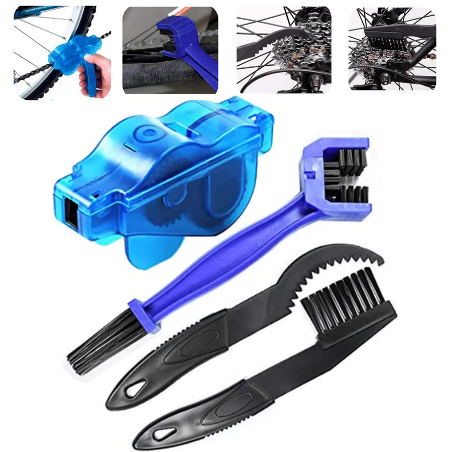 Kit Máquina e Escovas para Limpeza Corrente Bicicleta Bike 4 Peças