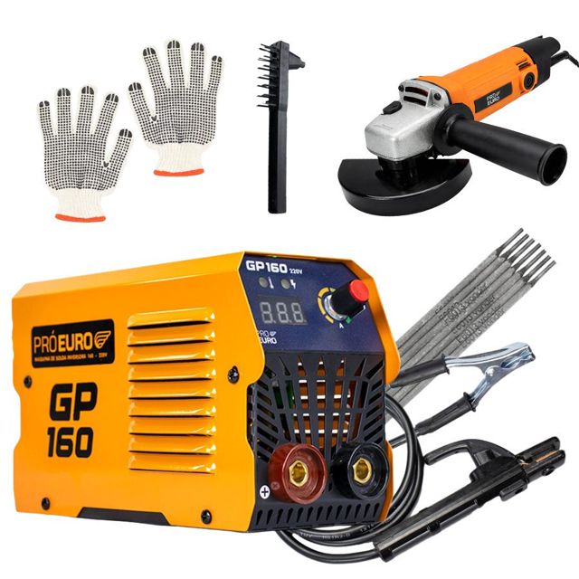 Kit Máquina Solda Inversora 160A 220V MMA TIG Lift e Esmerilhadeira 720W 220V Pró Euro
