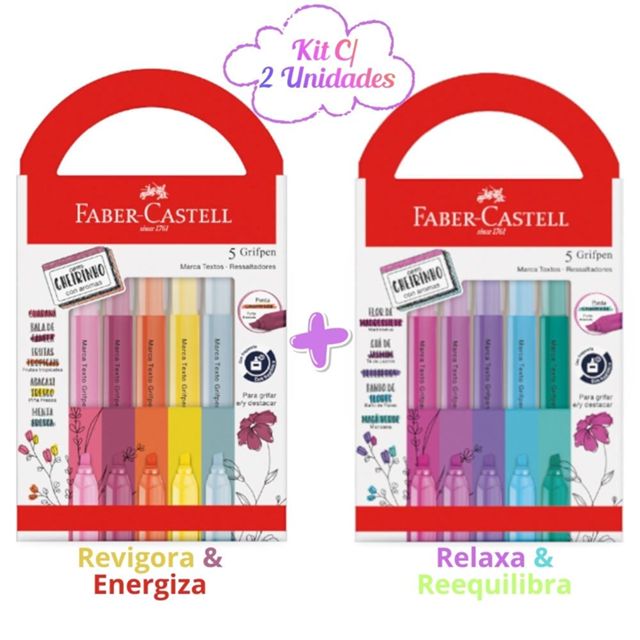 Kit Marca Texto 5 Cores Revigora Energiza/Relaxa Reequilibra Cheirinho Faber-Castell