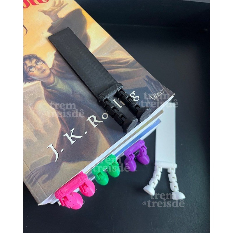 Kit de marcadores de páginas com perninhas articuláveis, perfeitos para quem ama itens criativos, divertidos e diferentes na hora da leitura! Produzidos em impressão 3D, são leves, práticos e dão um toque único aos seus livros, parece até que o personagem ficou preso entre as páginas! CORES ALEATÓRIAS CONFORME DISPONIBILIDADE DE ESTOQUE Medidas aproximadas: Comprimento total: 11cm Espessura da parte que fica dentro do livro: 1,5cm Fotos reais: Todas as imagens do anúncio são fotos reais do produto, para que você veja exatamente como ele é. Observação: Pode conter pequenas marcas de suporte e linhas de junção, características naturais do processo de impressão 3D