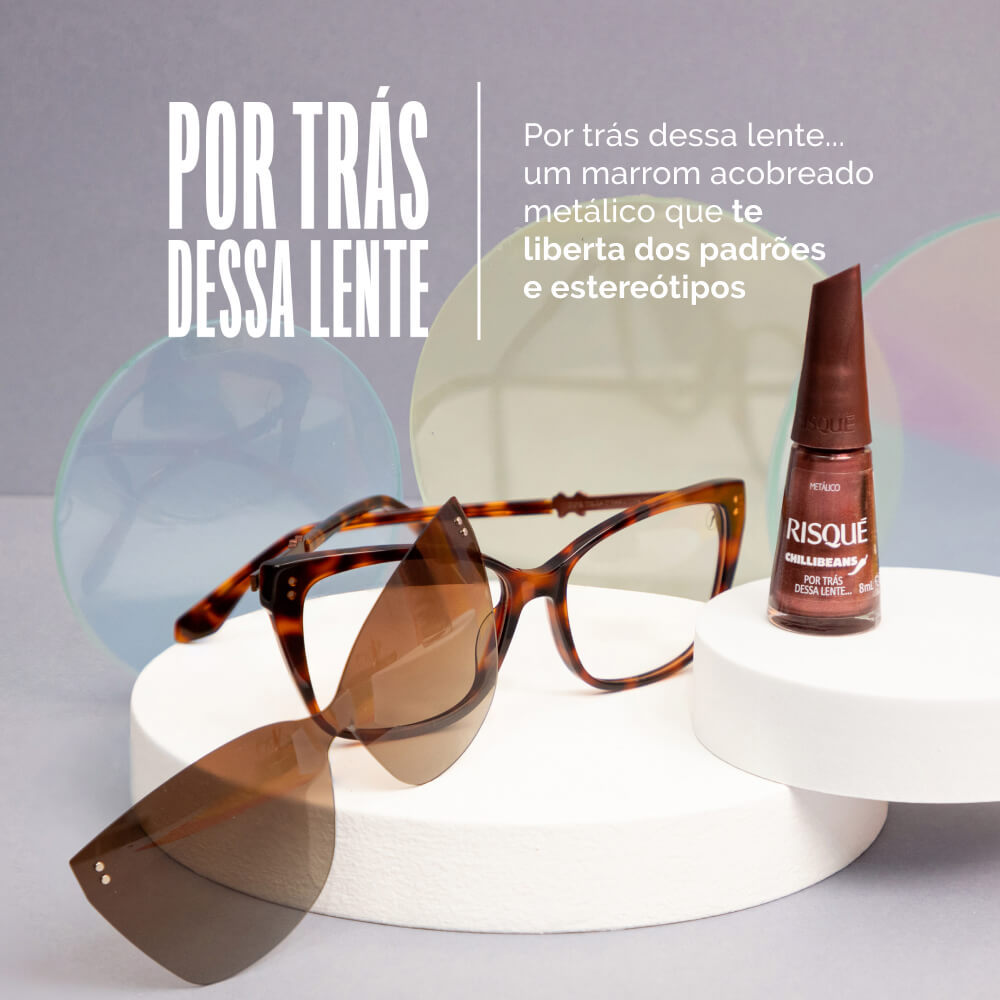 Atualize seu visual com o Kit Marrom Perfeito! 3 unidades da coleção Chilli Beans: Por Trás Dessa Lente (bronze metálico), A Onça que Habita em Mim (marrom com glitter) e Top Coat Fixador Diamond Gel. Cores terrosas com acabamento metálico e efeito. Secagem rápida, ultra brilho e alta cobertura. Fórmula hipoalergênica e cruelty-free. Edição limitada Risqué & Chilli Beans.