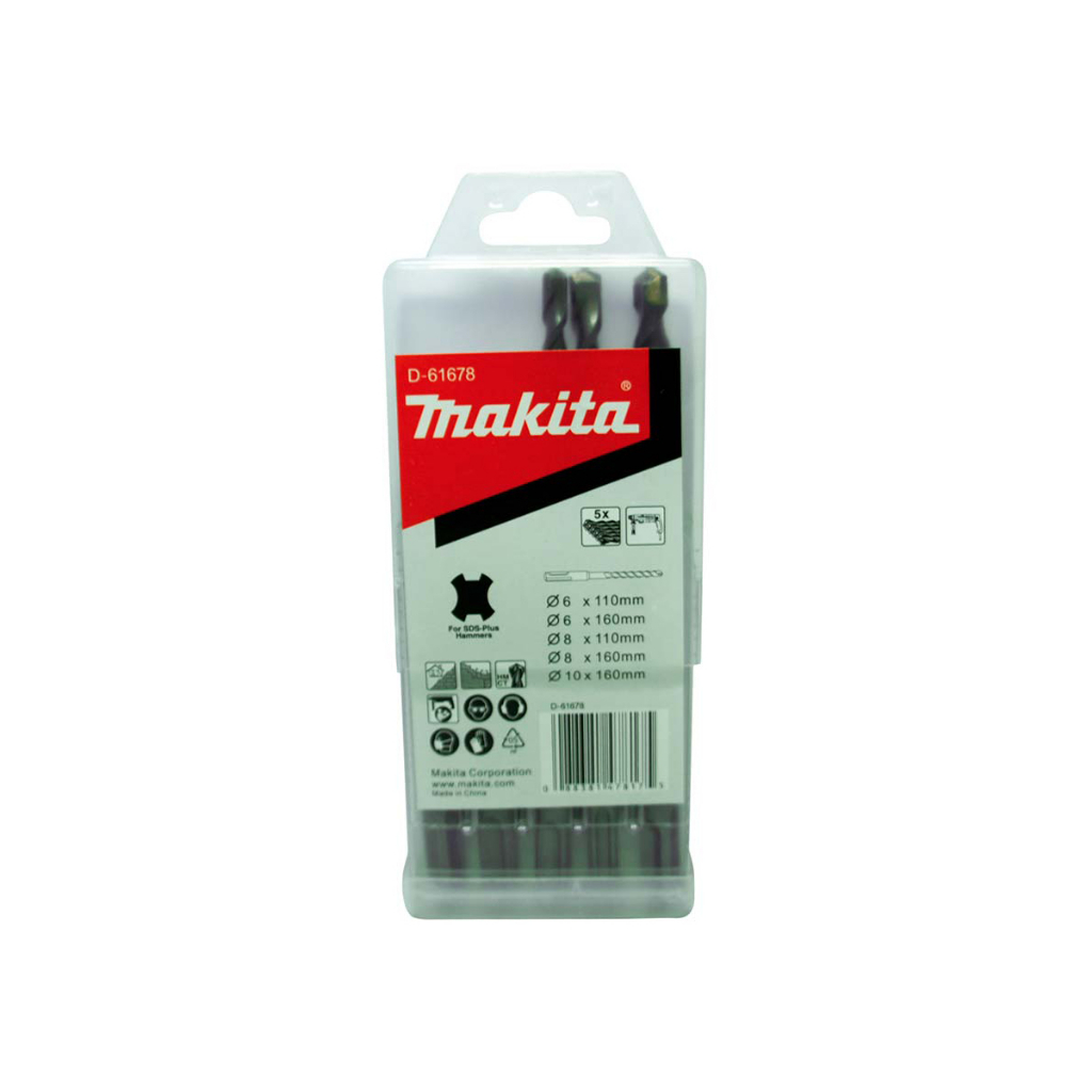 Kit Martelete Combinado 24mm 800W HR2470 Makita e 5 Brocas para Concreto Martelete Combinado 24mm com Encaixe SDS PLUS 800 Watts HR2470 Makita Características Martelete rotativo e rompedor. Velocidade variável. Rotação reversível. Limitador de torque. Encaixe SDS PLUS. Dupla isolação. Adaptável a coletor / aspirador de pó. Informações Técnicas - Potência: 800W; - Rotação por minuto: 0-1.100; - Impacto por minuto: 0-4.500; - Capacidades: Metal: 13mm; Madeira: 32mm; Concreto: 24mm; - Dimensões (C x L x A): 370 x 84 x 214mm; - Energia de Impacto 2.7 Joules; - Peso: 2.9kg; - Emissão de vibrações: 15.5 m/s²; - Incerteza K: 1.5m/s². Conjunto de Brocas SDS Plus D-61678 Características Kit de brocas Makita para martelete SDS plus, nos tamanhos 6mm, 8mm e 10mm com 5 brocas. Broca de widea para concreto, pedras e cimento. Informações Técnicas - Encaixe: SDS Plus para marteletes; - Broca de widea para concreto, pedras e cimento; - Alta qualidade e resistência; - Peso bruto: 250 gramas. Kit composto por: 1 - Martelete Combinado 24mm HR2470; Acompanha: 1 - Punho completo. 1 - Limitador de profundidade. 1 - Maleta; 1 - Broca 6x110 mm; 1 - Broca 8x110 mm; 1 - Broca 6x160 mm; 1 - Broca 8x160 mm; 1 - Broca 10x160 mm. Qualidade: Trabalhamos com produtos de fabricantes reconhecidos em todo o mercado brasileiro e internacional. Vendemos produtos de excelente desempenho, para uso profissional. Conte com nosso suporte, para tirar dúvidas referentes à utilização dos produtos. Observação: - Todas as informações divulgadas são de responsabilidade do Fabricante/Fornecedor; - Imagens meramente ilustrativas, consulte nosso atendimento para mais detalhes.