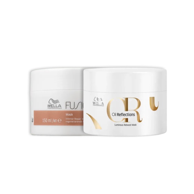 Este kit contém: - 1 Máscara Capilar Fusion Reconstrução 150ml - 1 Máscara Capilar Oil Reflections Luminous 150ml Máscara Capilar Fusion Reconstrução 150ml Sobre o Produto: Tratamento Intenso para cabelos danificados. Protege instantaneamente contra a quebra causada pelos danos da escovagem e movimentos mecânicos. Contém aminoacidos da seda. Modo de usar: Aplicar os cabelos úmidos. Deixar agir durante 5 minutos. Enxaguar abundantemente. Cuidados/Restrições: Evite o contato com os olhos. Caso isso aconteça, enxágue com água em abundância. Havendo irritação, suspender o uso e procurar orientação médica. Não ingerir. Manter fora do alcance de crianças. Uso externo. Máscara Capilar Oil Reflections Luminous 150ml Sobre o Produto: Mascara indicada para todos os tipos de cabelo. Nutre, hidrata e revitaliza a fibra capilar. Deixando os cabelos mais macios, sedozos e com muito brilho. Modo de usar: Após o uso do shampoo Oil Reflectios. Aplique uma pequena quantidade da mascara, massageie suavemente mecha a mecha. Deixe atuar de 5 a 10 minutos. Enxague abundantemente. Ação: Fios profundamente hidratados e nutridos, luminosos e macios.