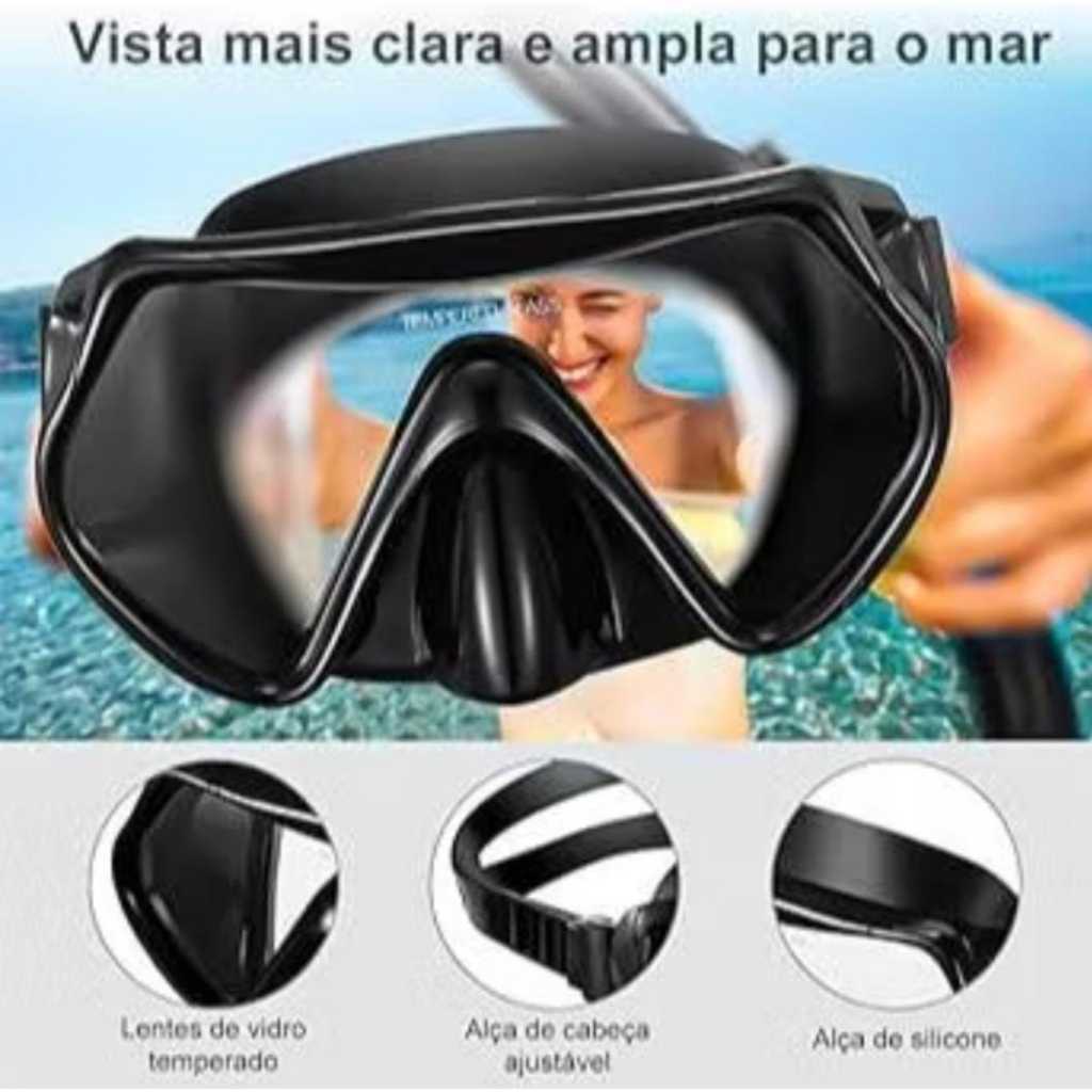 Kit Máscara Mergulho Snorkel Óculos Respirador Profissional Adulto Praia Piscina Ajustável M1010S12S TOP