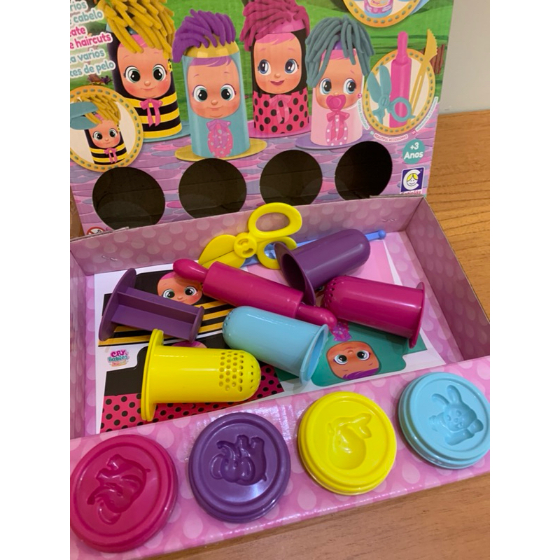 Kit Massinha Cry Babies Cabelos - Cotiplas Coloque a massinha no bonequinho , Prescione o embolo para o cabelo Crescer , agora Crie varios cortes de cabelos. Produto Disney Crie Varios Cortes de Cabelo Kit contem : 04 Potinhos de Massinhas 50 gramas cada 04 - Porta Cabelos 01 - Rolo 01 - Tesoura 01 - Faquinha Adesivos CRy Babies 02 - Adpatador para injetar os cabelos Super divertida com Cheiro super Agradavel As mamaes adoram essa massinha pois ela na gruda e as Crianças adoram Brincar de massinha Use a imaginaçao e faça lindos Doces 100 % Nacional Faricado no Brasil Envio imedito Somos Distribuidos De Brinquedos para todo Brasil Enviamos seu pedido em ate 24 hoas apos a liberaçao da etiqueta de envio