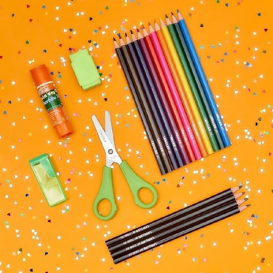 Kit Material Escolar Com Geométrico Régua E Tesoura E Lápis E Apontador E Borracha E Cola Bastão