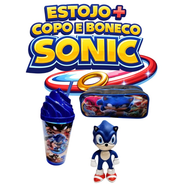 Kit infantil Sonic perfeito para o dia a dia escolar e momentos de diversão. Conjunto completo com estojo escolar, copo com canudo e boneco do Sonic, todos com design moderno e cores vibrantes inspiradas no personagem. O estojo possui bom espaço interno para guardar lápis, canetas e pequenos acessórios, com estampa colorida do Sonic. O copo é prático, acompanha tampa e canudo, ideal para sucos e bebidas no lanche. Já o boneco do Sonic complementa o kit, sendo ótimo para brincar ou decorar. Uma opção prática e criativa para crianças fãs do Sonic, ideal para escola, passeios ou para presentear.