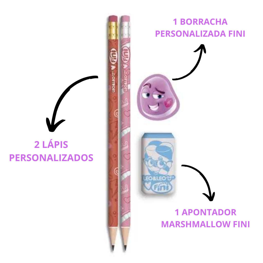 Kit Material Escolar Fini 4 Peças Papelaria Fofa Com 2 Lápis + Borracha + Apontador