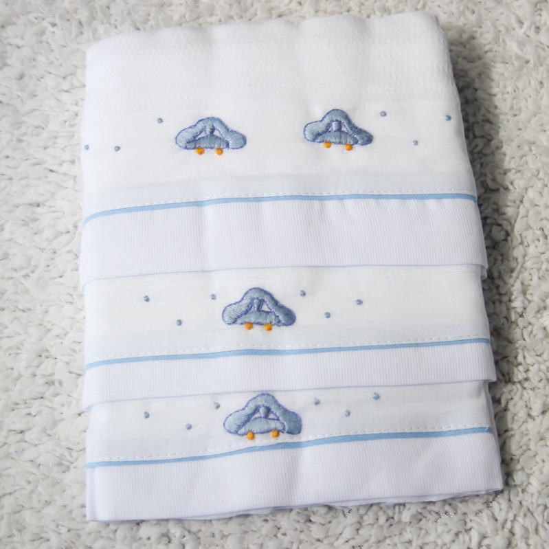 O Kit Maternidade é um item essencial que não pode faltar no enxoval do seu bebê, ideal para usar nas trocas de maternidade, e Também em saídas rápidas como consultas e passeios. Fraldas Bordadas com toda a delicadeza que o bordado manual proporciona. O kit contém 3 peças: 01 Toalha Fralda bordada manualmente. (66 cm x 110 cm) 01 Fralda de Ombro bordada manualmente. (70 cm x 70cm) 01 Pano de Boca bordado manualmente. (30 cm x 30cm) Composição: Confeccionado com fralda cremer luxo - 100% Algodão.