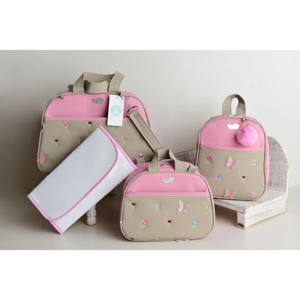 Kit Maternidade Premium Borboletas & Flores – 3 Peças + Trocador | Exclusivo, Bordado, Super Espaçoso e Elegante