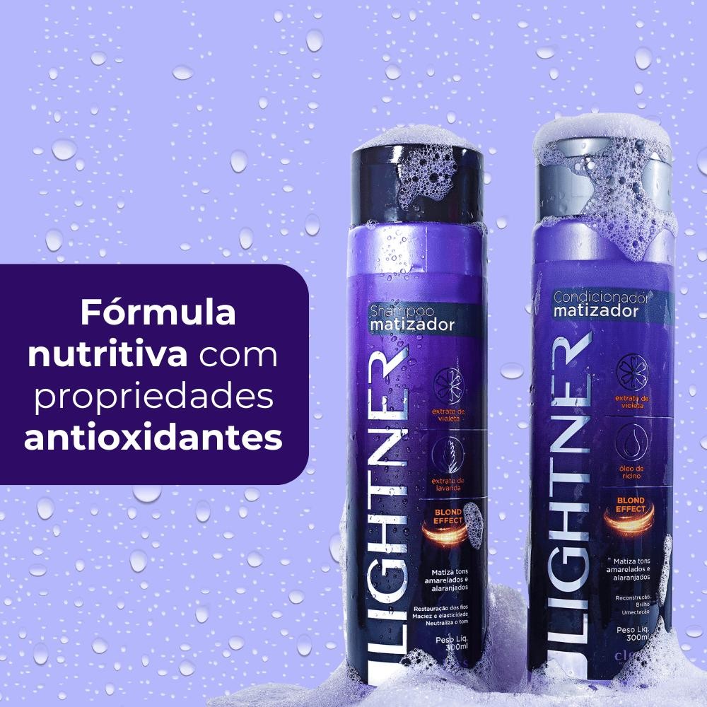 Experimente a linha de tratamento matizadores Lightner, ideal para limpeza delicada e eficaz dos fios, auxiliando na eliminação do indesejado tom amarelado causado pela oxidação natural da fibra capilar, promovendo brilho prateado especial aos cabelos loiros , com mechas ou grisalhos
