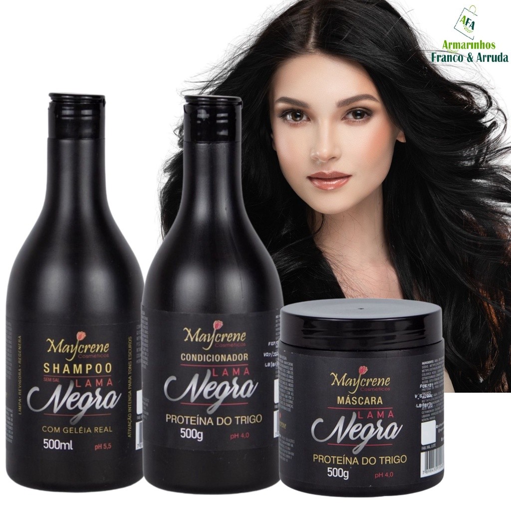 Kit Maycrene Matizador Lama Negra (2 Shamp, 2 Cond e 1 Másc) Ativador de Tons Escuros