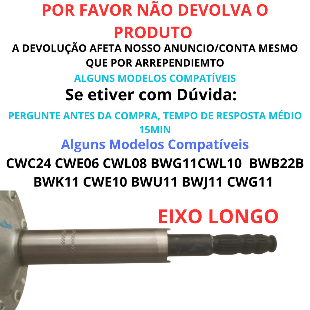 Kit Mecanismo Compativel Brastemp E Consul Ative 11kg C/suporte Bwg11 Bwu11 Bwk11 Bwj11 Eixo Longo