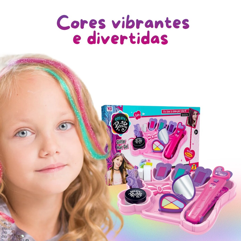 Kit Mechas Salão Coloridas Kit Menina Pinte O Cabelo Brilho Menina Infantil Pintar o Cabelo Kizumba