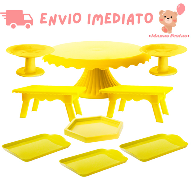 Kit Mega 2.0 Boleira Cake Renda 22cm + 2 Mesinhas + 2 Mini Cakes + 3 Bandejas 20x13cm + 1 Mini Sextavadinha (+6 Cores)