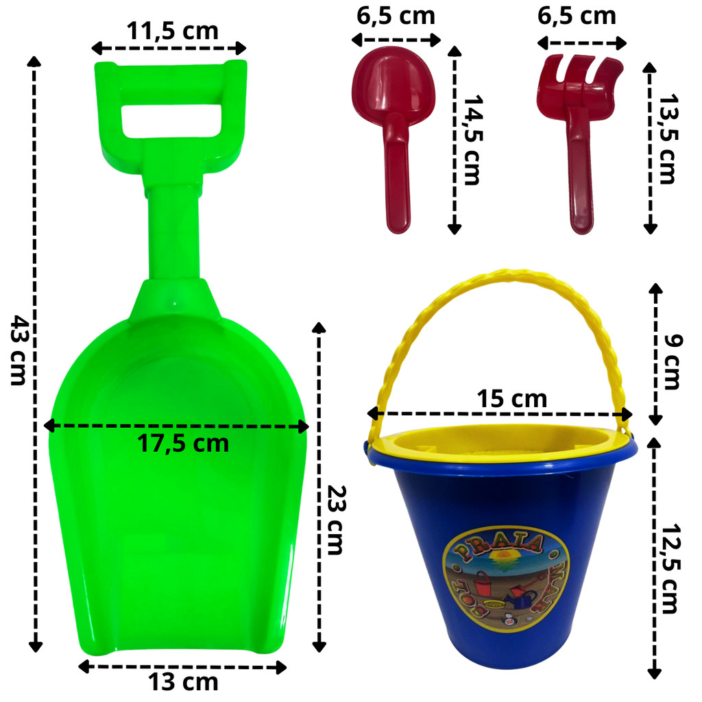 Kit Baldinho de Praia Infantil com Peneira, Pá Grande, Rastelo e Molde – Cores Sortidas! Transforme a brincadeira na areia em uma verdadeira aventura de verão! Este kit de praia infantil é perfeito para estimular a imaginação e garantir horas de diversão ao ar livre, seja na praia, na piscina ou no parquinho. Composto por baldinho com peneira, pá, rastelo e moldes em formato de bichinhos, o conjunto permite que a criança crie castelinhos, escavações e formas na areia, desenvolvendo coordenação motora, criatividade e habilidades sensoriais. Produzido em plástico resistente, leve e seguro, é ideal para as mãozinhas dos pequenos e fácil de transportar. Destaques do Produto: - Kit completo para brincadeiras na areia - Estimula criatividade e desenvolvimento motor - Material resistente e durável - Leve, prático e fácil de manusear - Ideal para praia, piscina, quintal e parquinhos - Pá em tamanho grande Conteúdo do Kit: 1 - Baldinho (aprox. 12,5 A x 15 L cm) 1 - Peneira (aprox. 14,5 A x 14,5 L cm) 1 - Pá grande (aprox. 43 A x 17,5 L cm) 1 - Pá pequena (aprox. 14,5 A x 6,5 L cm) 1 - Rastelo (aprox. 13,5 A x 6,5 L cm) 1 - Molde de animal Importante: A Cor é Sortida! (enviada conforme disponibilidade em estoque) O Molde de animal também é sortido! Informações: Material: Plástico Conteúdo: 6 peças Certificado de Segurança: INMETRO Um brinquedo simples, educativo e cheio de possibilidades para tornar o verão ainda mais divertido! Compre hoje e deixe o verão muito mais divertido!