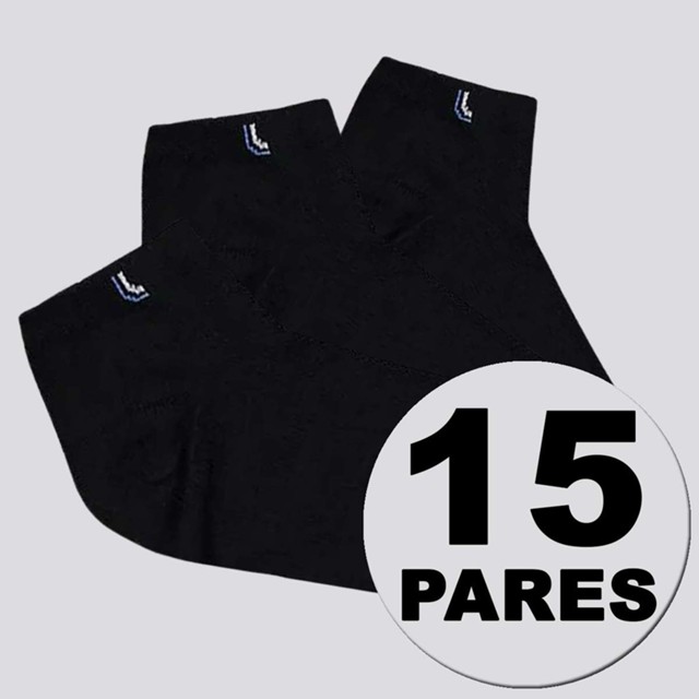 Composição: 79% Algodão, 19% Poliamida e 02% Outras Fibras Contém: 15 pares na cor preta Indicado para: Casual Origem: Nacional Gênero: Unissex Cano: Médio Tamanhos: 33-36 37-40 41-44
