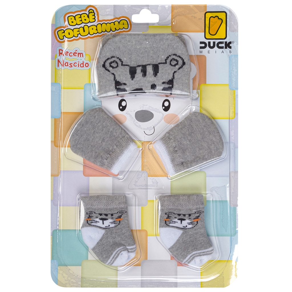 Kit Meia + Luva + Touca para Bebê Recém Nascido 0 a 03 meses Maternidade Enxoval Fofurinha