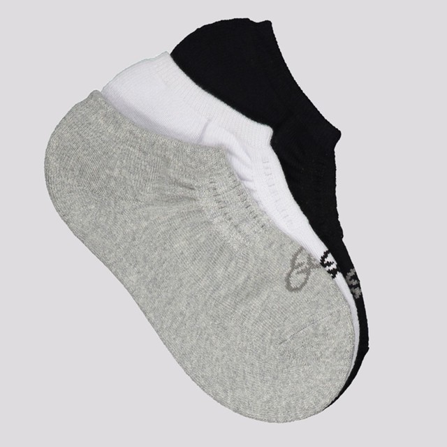 Composição: 75% Algodão, 22% Poliéster, 02% Elastano e 01% ElastodienoContém: 01 par branco, 01 par cinza e 01 par pretoOrigem: ImportadaGênero: UnissexCano: Invisível