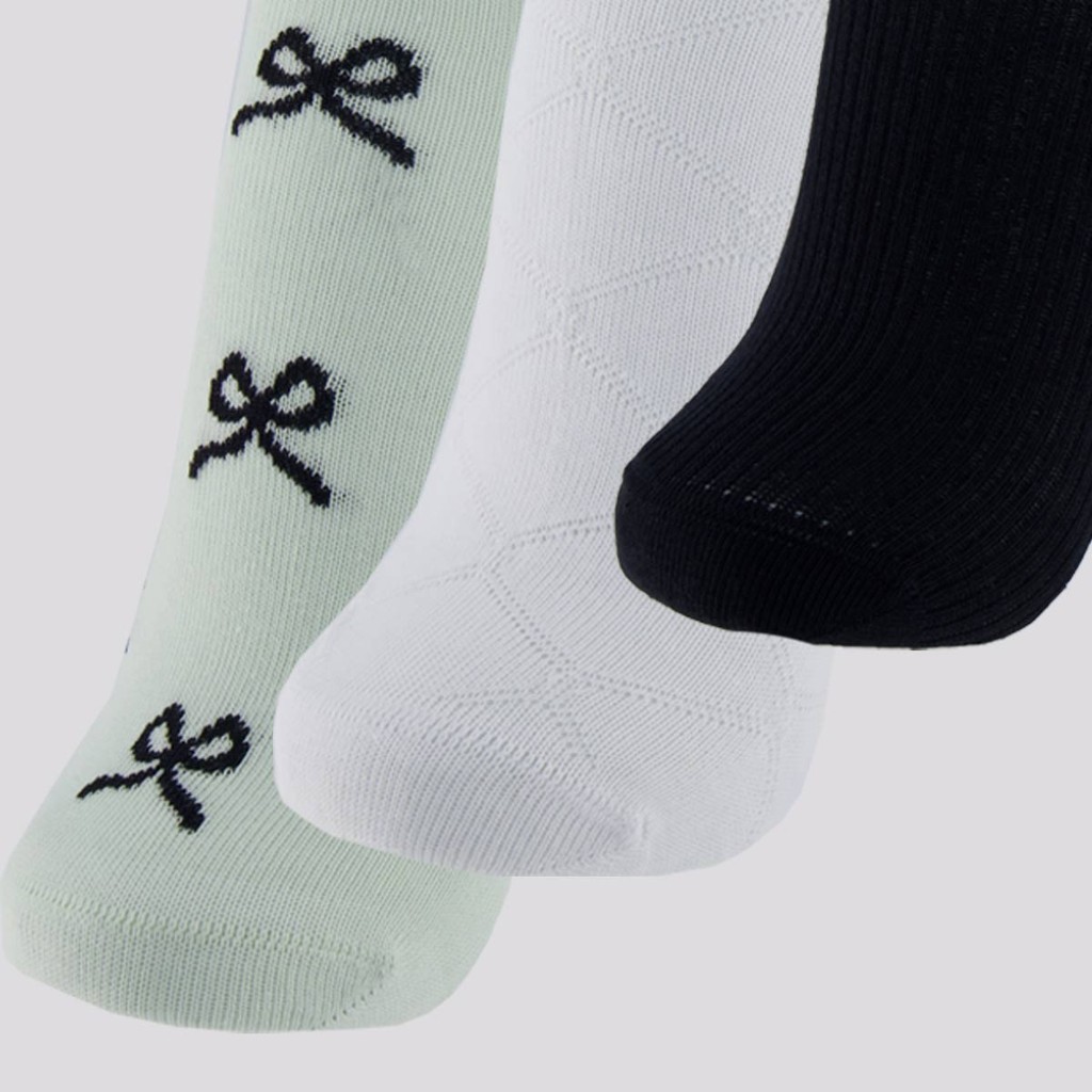 Kit Meia Selene 3 Pares Soquete Feminino Verde Preta e Branca