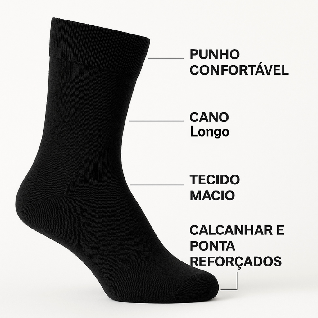 Kit Meia Social Masculina Cano Longo Confortável e Respirável Kit com 3, 6 ou 12 Pares Premium 38-45
