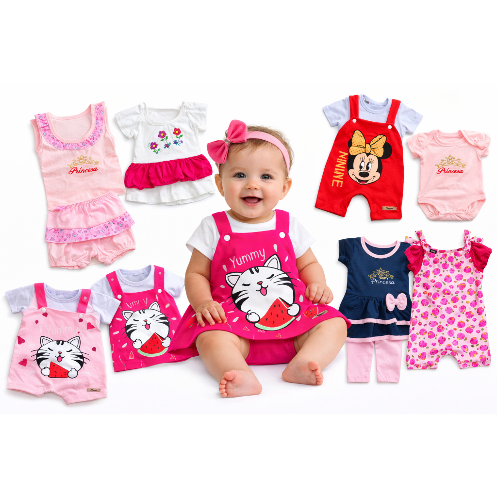 Kit Menina infantil 4 ate 10 peças de 0 a 12 meses, entrega imediata, tecido premium