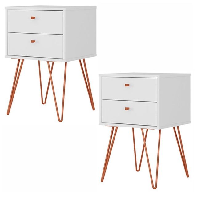 Kit Mesa de Cabeceira Retrô Pés Metal Bled Branco - Olivar Móveis