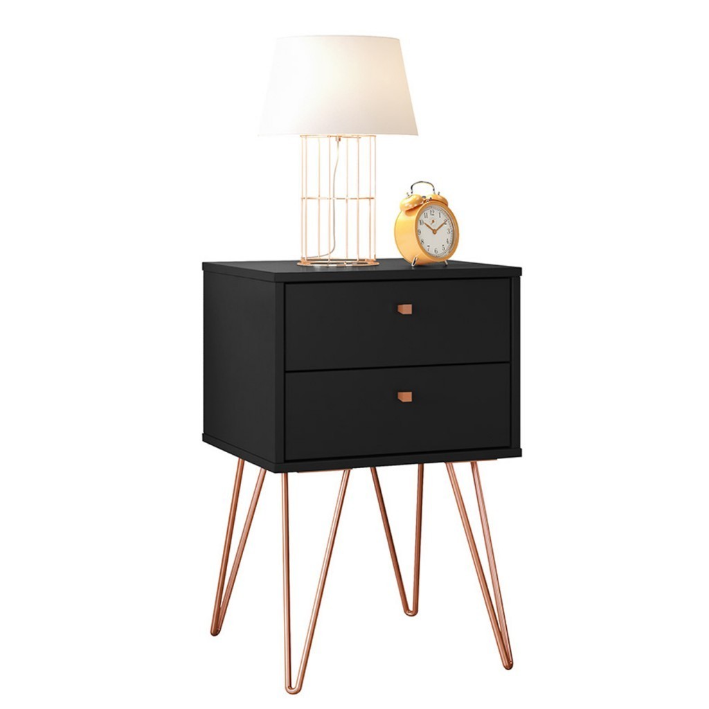 Kit Mesa de Cabeceira Retrô Pés Metal Bled Preto - Olivar Móveis