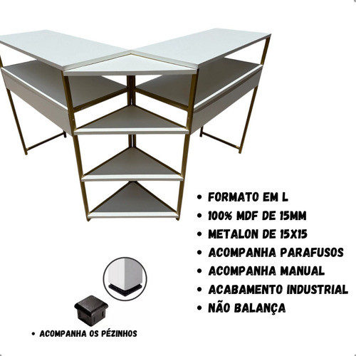 Kit Mesa Manicure L Modelo Industrial + Expositor + Carrinho Auxiliar