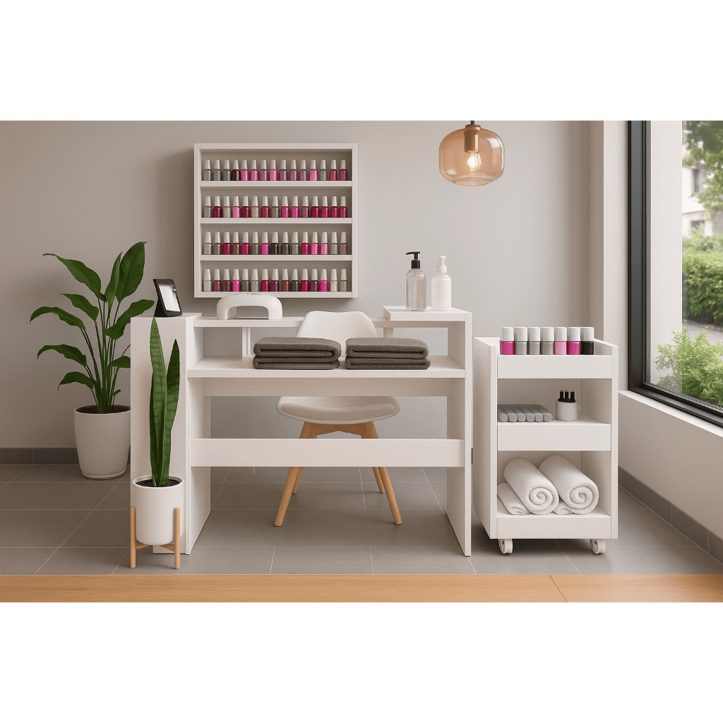 Kit Mesa Manicure Profissional Branco MDP + Carrinho Auxiliar para Salão