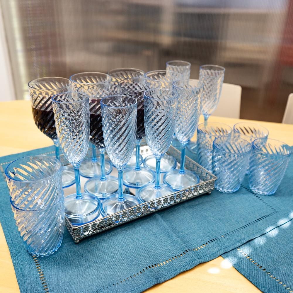 Kit Mesa Posta 18 Peças Twist Azul 12 Taças 6 Copos Plástico Plasútil