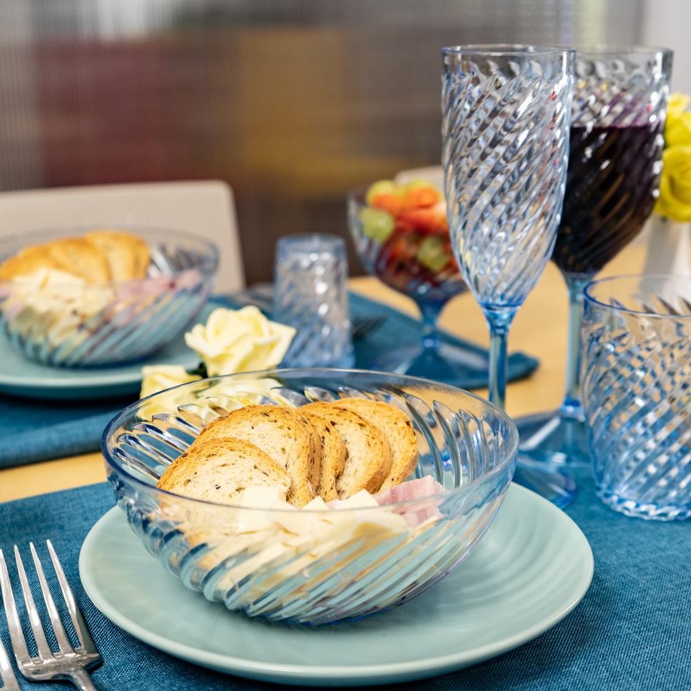 Kit Mesa Posta Casal 12 Peças Twist Azul 6 Taças 2 Copos 2 Bowls 2 Saleiros Plástico Plasútil