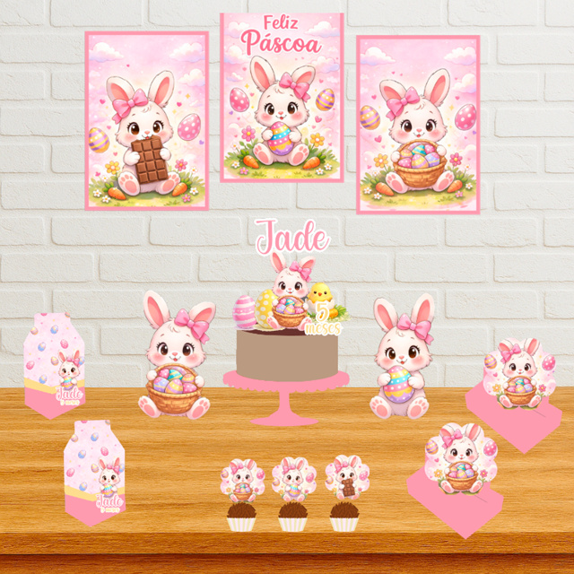 KIT MESVERSÁRIO COELHO DA PÁSCOA/ KIT SÓ UM BOLINHO PERSONALIZADO PÁSCOA/ KIT FESTA PERSONALIZADO PÁSCOA