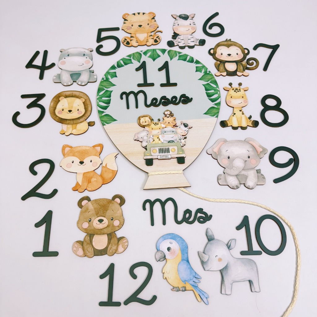 Kit Mesversario Safari Balão Verde - 29 Itens Para Fotos Mensais Menino