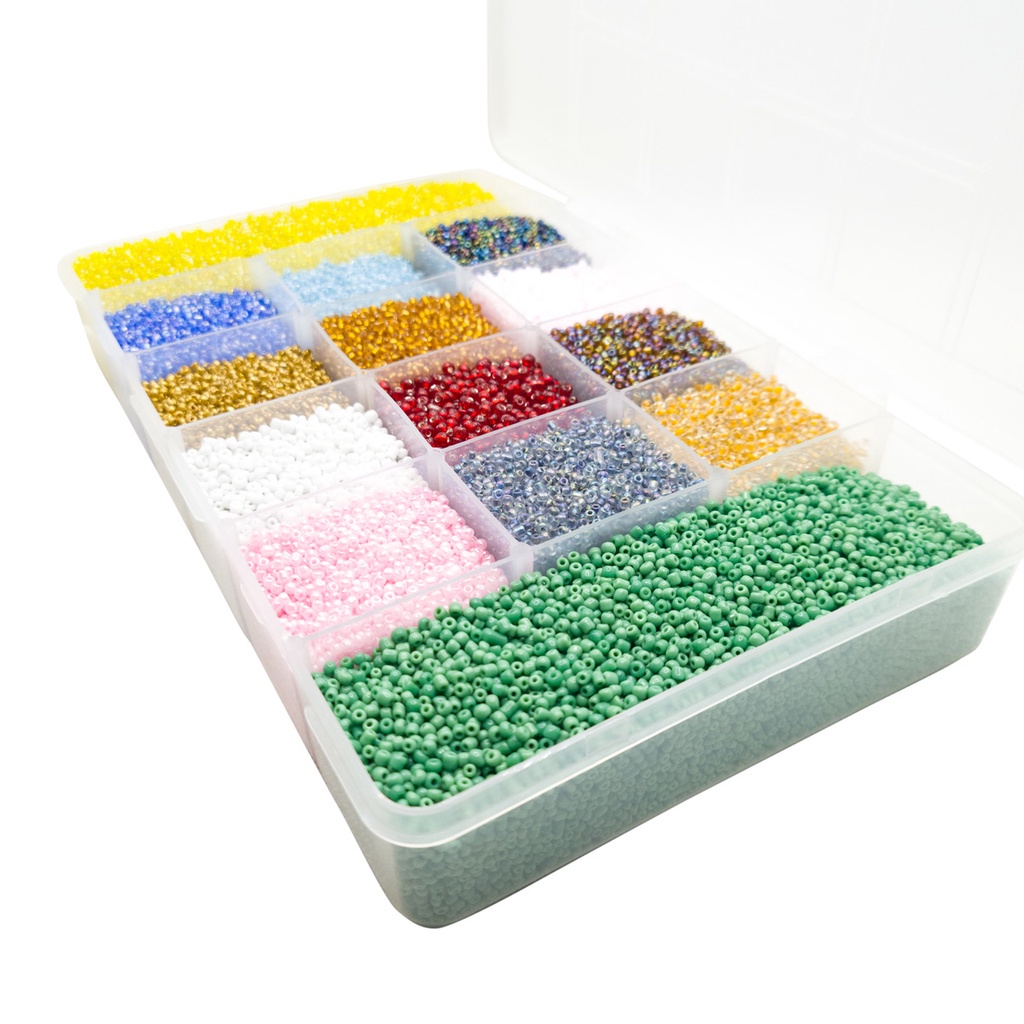Kit Miçanga Pulseira Colar Choker 14 Cores 2mm 40000pçs + Caixa Divisória