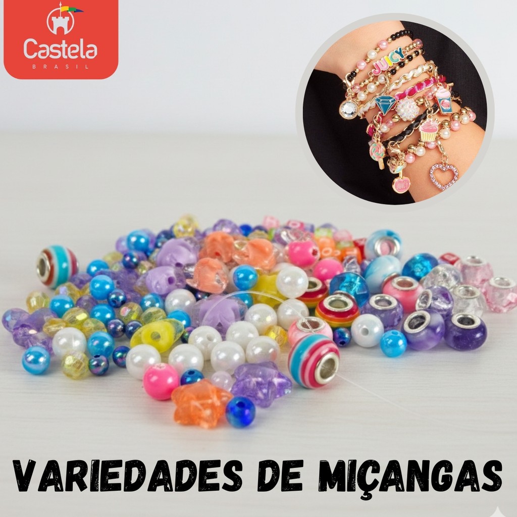 Kit Miçangas 106 Peças 3 em 1 Pulseiras e Colares - Castela